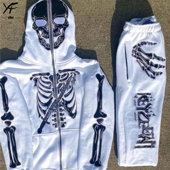 Ensemble sweat à capuche zippé intégral brodé en chenille de haute qualité sweat à capuche zippé brodé en coton éponge français personnalisé et jogger
