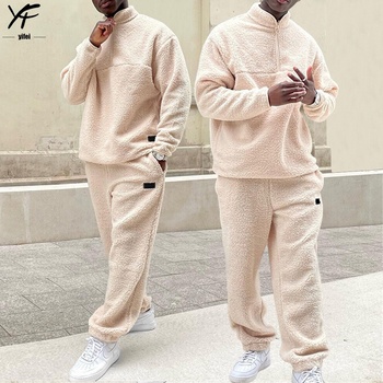 Sweats à capuche et sweatshirts personnalisés du fabricant Pull en laine d'agneau hiver 500gsm épais Teddy Sherpa Half Zip Hoodie Set pour hommes